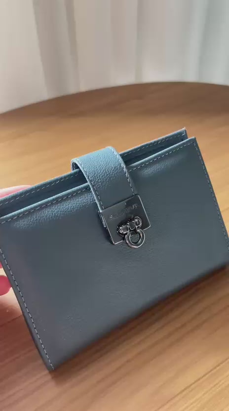 Seu design moderno conta com fecho metálico exclusivo e detalhe elegante da marca, adicionando charme e estilo ao modelo. Compacta e funcional, a Carteira Feminina Pequena Couro Grafite Carol possui compartimentos internos bem distribuídos, perfeitos para manter cartões, cédulas e documentos organizados no dia a dia.