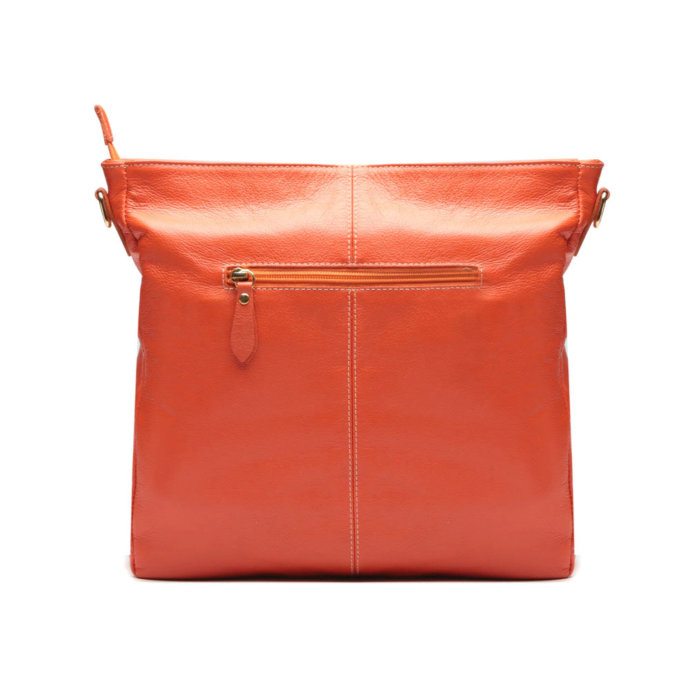 A Bolsa Saco Transversal Couro Laranja Rita vem com uma alça de ombro e uma alça transversal ajustável e removível, proporcionando flexibilidade no uso. Seu compartimento interno espaçoso e os bolsos adicionais garantem a organização de itens como celular, carteira e chaves. O fechamento em zíper oferece segurança e praticidade no uso diário.